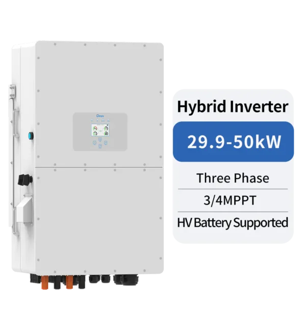 إنفيرتر Deye SUN 30K هجين يوفر حلاً مرنًا لتخزين وإدارة الطاقة في المشاريع المتوسطة والكبيرة، مع تكامل كامل بين الألواح الشمسية والبطاريات والشبكة.